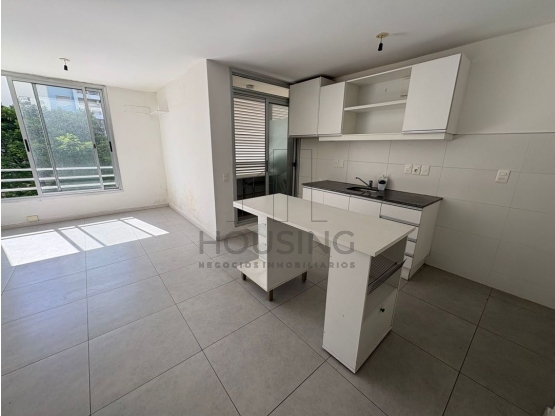 Amplio living con cocina semi integrada. Terraza con red de seguridad.