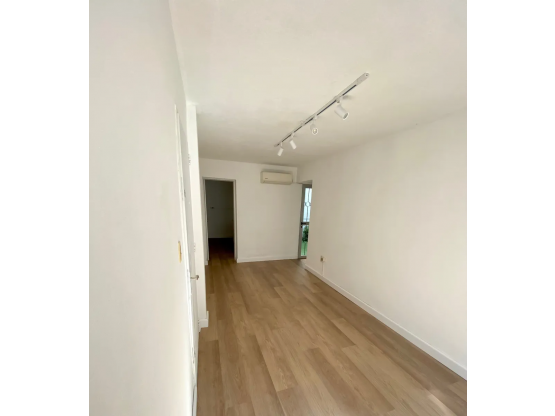 Luminoso living comedor con puerta-ventana hacia un patio común